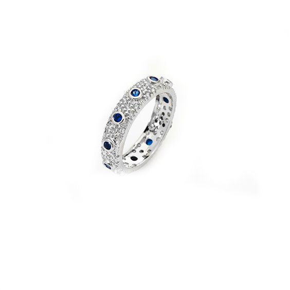 Gioiello Amen, Anello Rosario Con Rodio E Zirconi Blu, La Misura Dell'Anello È La 14. Gioiello Amen In Argento 925