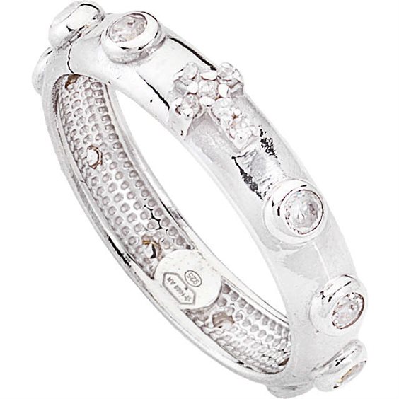 Fedina rosario in Argento 925/°°° rodiato con zirconi bianchi; diverse misure disponibili su richiesta