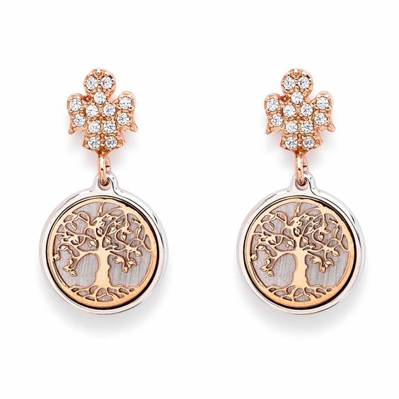 Orecchini Di Amen Da Donna Della Collezione Albero Della Vita. Orecchini In Argento 925 Con Zirconi Bianchi. Gioiello Con Ciondolo Del Diametro Di 1,2 Cm. Il Colore È Rodio Rosè.