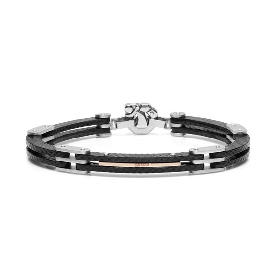 BARAKA' bracciale in oro rosa 18kt e acciaio a losanghe con fibra carbonio