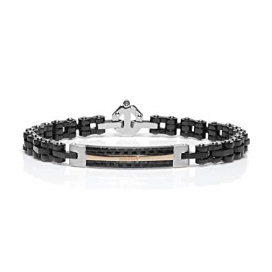 Braccialetto in oro rosa 750 ‰, argento 925 ‰, acciaio inossidabile. Tracciamento PVD nero. Fibra di carbonio.