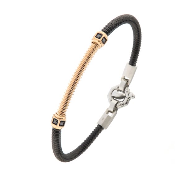 Bracciale da uomo Barakà in ceramica nera opaca,acciaio, titanio ed elementi in oro rosa 750‰.