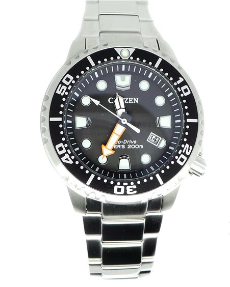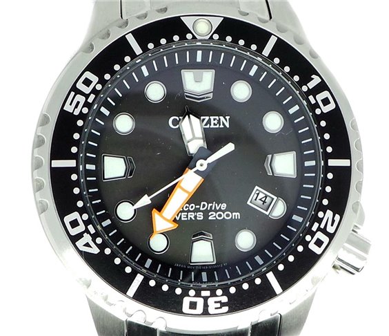 Orologio solo tempo da uomo della collezione DIVER'S con cassa in acciaio del diametro di 44 mm. Quadrante nero con datario e indici e sfere ad alta luminosita', vetro minerale. Cinturino in acciaio, movimento Eco Drive (a carica luce infinita), riserva di carica di 180 giorni. Fondo e corona serrati a vite, resistenza all'acqua 20 atmosfere.