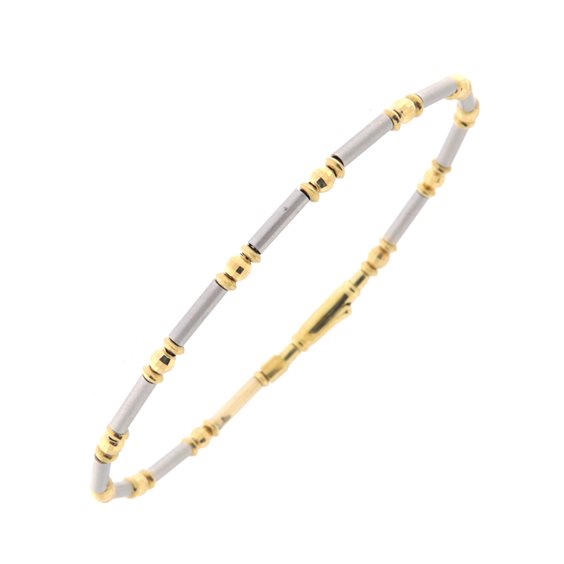 BRACCIALE RIGIDO A ELEMENTI IN ORO BIANCO E GIALLO.