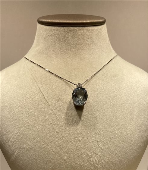 COLLANA CON PENDENTE IN ACQUAMARINA NATURALE E DIAMANTI. ACQUAMARINA CT. 7.00 DIAMANTI CT.0.09