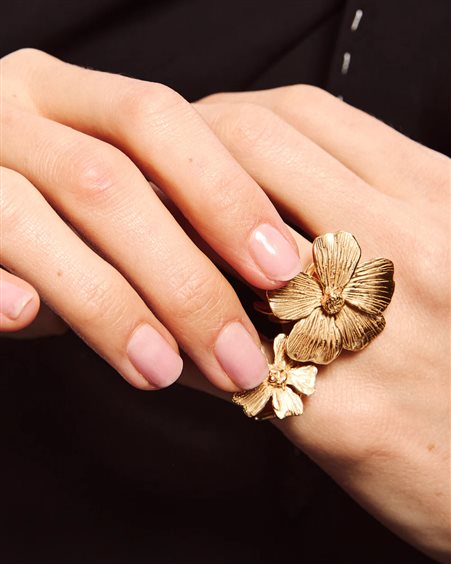 Anello Malva. I gioielli di Giulia Barela sono in bronzo bagnato in oro 24 carati, realizzati a mano con l'antica tecnica della cera persa.