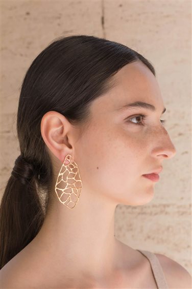Ispirati al continente nero, gli orecchini Africa sono un viaggio visivo tra forme contemporanee e ricordi lontani. Un design che racconta storie di terre lontane, di avventure e scoperte. I gioielli di Giulia Barela sono in bronzo bagnato in oro 24 carati, realizzati a mano con l'antica tecnica della cera persa.
