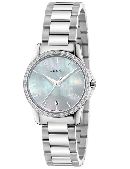 Cassa in acciaio inossidabile con cinturino in acciaio inossidabile. Risolto, lunetta con diamanti. Quadrante in madreperla con lancette argentate e indici indici. Tipo di quadrante: analogico. Visualizzazione della data a ore 6. Movimento al quarzo svizzero. Vetro zaffiro antigraffio. Tirare / spingere la corona. Dimensione della cassa: 27 mm. Forma della cassa rotonda. Chiusura deployante. Resistente all'acqua a 50 metri / 165 piedi. Funzioni: data, ora, minuti, secondi. Stile orologio da sera.