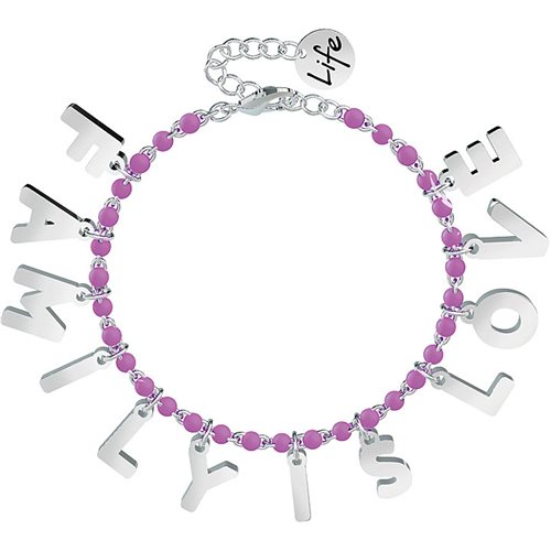 Bracciale Da Donna Di Kidult Della Collezione Family. Bracciale In Acciaio Con Ciondoli Family Is Love E Catena Rolò Con Inserimenti In Smalto Viola. Applicazioni In Smalto Sulla Catena. Misura Regolabile, Lunghezza Da 16 Cm. A 19 Cm. Materiale: Acciaio 316L, Smalto. Gioiello Con Frase: Famiglia, Un Universo Di Legami Unici Tenuti Insieme Dall'Amore..