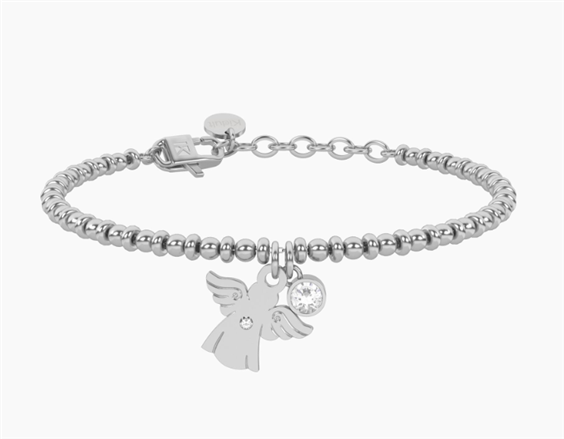 Bracciale in acciaio ad anellini con charms raffigurante un angioletto