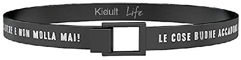 racciale uomo rigido Kidult Collezione LIFE PHILOSOPHY in acciaio I.P. nero, con frase incisa bianco su nero.Dimensioni 5.5x6.5 Ipoallergenico e ovalizzato per un indosso ergonomico, dimensione 6.5 X 5,5 cm, adatto a polsi di circonferenza fino a 20,5 cm. Chiusura apribile per un inserimento più pratico. ' Le cose buone accadono a chi sa aspettare. Le cose grandiose accadono a chi si spacca il c**o per farle accadere e non molla mai ! '. Garanzia, confezione e autenticità ufficiali Kidult.