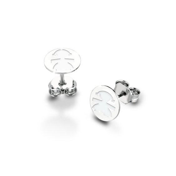 Orecchini in oro bianco 9kt LeBebe PrimeGioie con sagoma di femminuccia in smalto bianco.