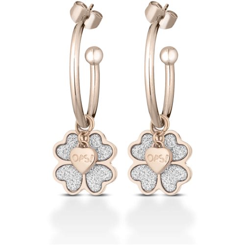 Orecchino Di Ops Objects Da Donna Della Collezione Glitter. Gioiello Realizzato In Acciaio. Orecchino A Cerchio In Acciaio Rosè Della Diimensione Di 20 Mm, Ciondolo In Acciaio Rosè Glitterato. L
