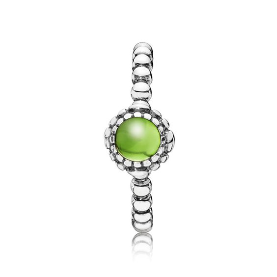 Anello Da Donna Di Pandora. Anello Con Pietra Natale AGOSTO Della Misura 14. Gioiello Realizzato In Argento 925 E Pietra Di Luna Di Colore verde.