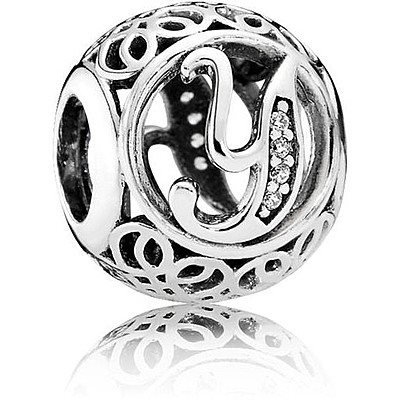Charm con iniziale Y, realizzato in argento 925 e zirconia cubica.