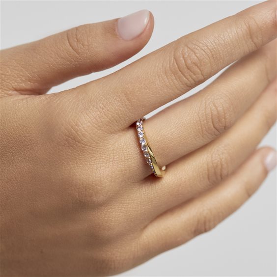 Anello Cavalier Materiale: Argento sterling 925 Finitura: Placcatura in oro 18k Pietre: Zircone lavanda Peso: 3.10 g DESCRIZIONE L’anello Cavalier si distingue per i suoi zirconi a spirale color lavanda. Un pezzo realizzato in Argento Sterling 925 e placcato in Oro 18k, nel quale il maschile si fonde con il femminile. Immersa in un’atmosfera sfarzosa e guerriera, Cavalier emerge come il nuovo barocco semplificato.