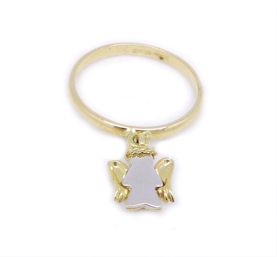 Anello in oro giallo 750/... con charm a forma di angelo (base 0,8 cm altezza 0,8 cm).