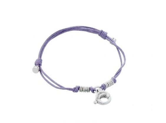 Bracciale della serie: Angeli in Argento e tessuto cerato viola. Con chiusura per mettere i charms.