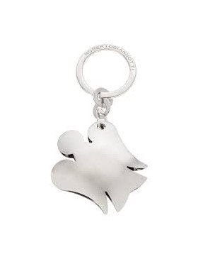 Portachiavi in argento con ciondolo ad angelo bombato circa 4 cm in argento.