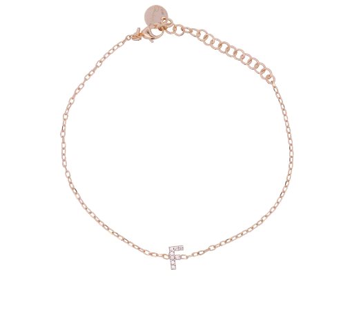 Bracciale catena della collezione Rue Des Mille Stardust Classic da donna. Colore: oro. Il gioiello è in argento 925‰ con galvanica in oro giallo 18Kt caratterizzato da un ciondolino passante a forma di "F" impreziosito da zirconi. Chiusura a moschettone.