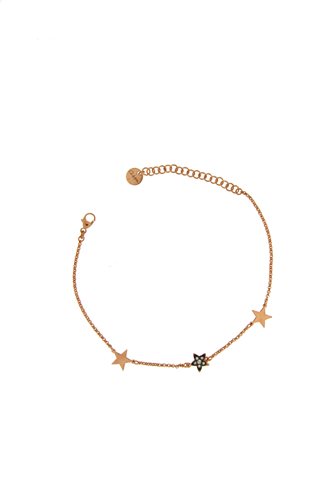 BRACCIALE CATENELLA 3 SOGGETTI STELLA ZIRCONI NERI Argento 925%, galvanica oro rosa.