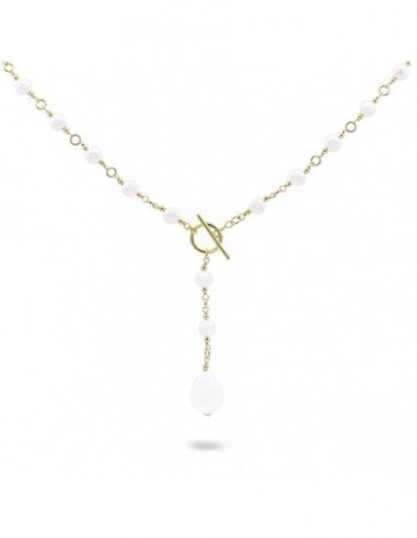 COLLANA ARGENTO DORATO 925% CON PERLE AMMAGLIATE CHIUSURA T BAR E PENDENTE CON GOCCIA FINALE