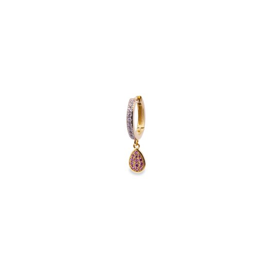 Mono orecchino con cerchietto medio di zirconi bianchi e goccia di zirconi rosa.