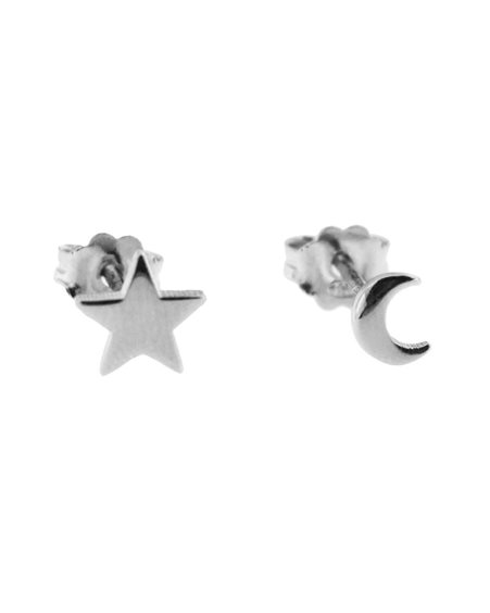 Orecchini lobo della collezione Rue Des Mille I Sogni Son Desideri da donna. Colore: oro bianco. Gli orecchini in argento 925‰ con placcatura oro bianco 18kt sono formati dalla combinazione di due soggetti bombati: stella e luna. Chiusura a perno.