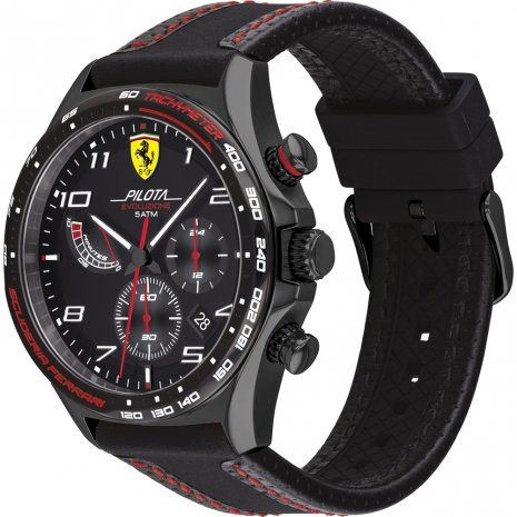 Ferrari orologio FER0830717 Orologio scuderia ferrari da uomo con movimento al quarzo EPSON VR3GB e funzioni di cronografo con data. Cassa in acciaio con trattamento ip nero dal diametro di 44 mm. Quadrante analogico nero con indici a numeri arabi e logo a ore 12. Datario tra le ore 4 e 5. Cinturino in gomma nera con bordi in pelle nera ed impunture rosse. Resistente all'acqua fino a 50 metri di profondità 5BAR. Garanzia Ufficiale 2 anni Scuderia Ferrari, Confezione Originale Scuderia Ferrari.