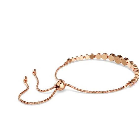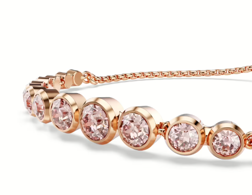 Bracciale da donna di Swarovski della collezione imber. Bracciale Placcato color oro rosa con cristalli Swarovski Tagli arrotondati misti. Lunghezza massima: 24 cm. Ampiezza: 0.6 cm. Colorazione del cristallo rosa. Chiusura scorrevole. La referenza è 5718204