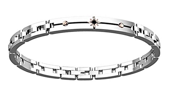 Bracciale acciaio a maglia mobile,piastra con rosa dei venti in oro rosa 18 ct.cm21