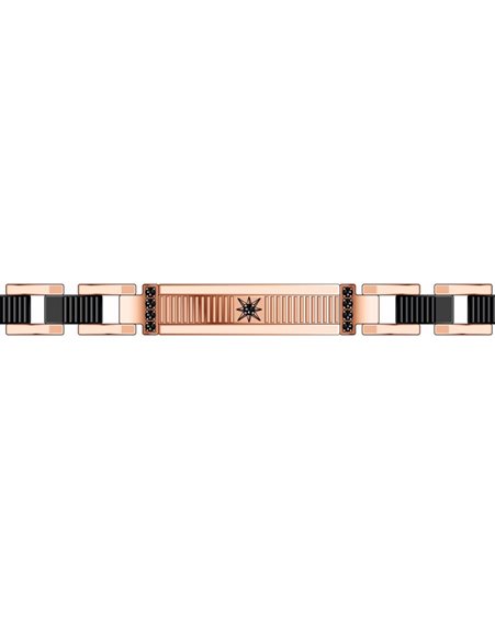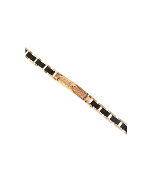 Bracciale da uomo in acciaio e pvd in oro rosa gioielli zancan. Bracciale in acciaio anallergico, placca centrale con spinelli neri e pvd in oro rosa. Bracciale in acciaio spinelli neri pvd in oro rosa chiusura a moschettone lunghezza del bracciale 21 cm bracciale zancan da uomo in acciaio - gioielli zancan made in italy.