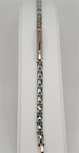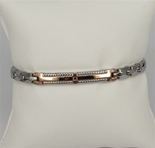 BRACCIALE IN ACCIAIO PIASTRINA CON INSERTI DORATI ROSE'E SPINELLO NERO