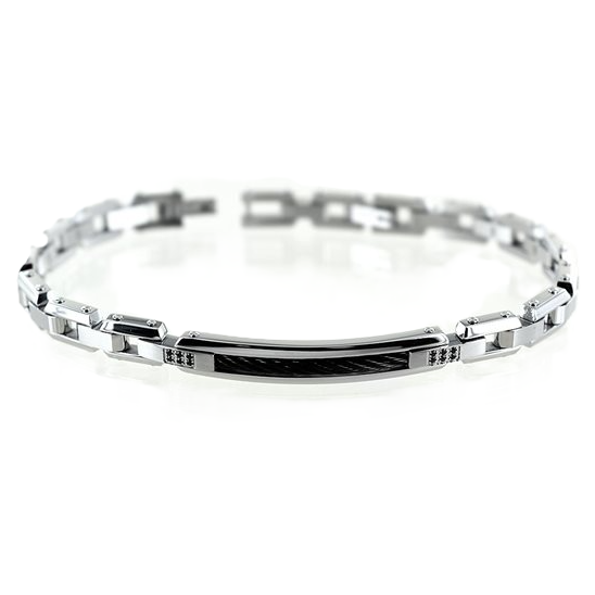 Bracciale Zancan da uomo della collezione Hi-Teck, in acciaio 316l anallergico con spinelli neri e fibra di carbonio. Bracciale con maglia classica larga e con targa centrale con spinelli neri e dettaglio in fibra di carbonio. Lunghezza bracciale di 21 cm con chiusura a scatto.
