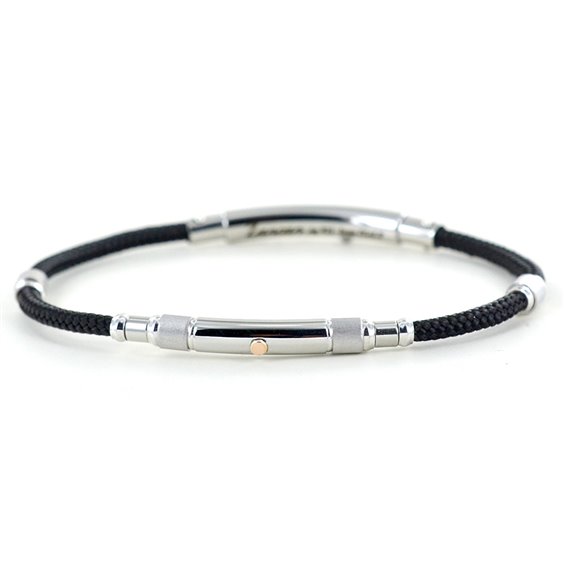 Bracciale da uomo in argento e kevlar collezione ROBIKEVLAR gioielli Zancan. Bracciale in kevlar nero con inserto centrale in argento 925/000 con particolare finitura e dettaglio in oro giallo. Chiusura regolabile in acciaio. Dimensione dell'inserto 4,5cm circa. Diametro del bracciale regolabile fino a 7cm circa e spessore 2,90mm. Bracciale in kevlar Inserto in argento 925/000 Chiusura regolabile in acciaio Diametro del bracciale 7cm Made in Italy