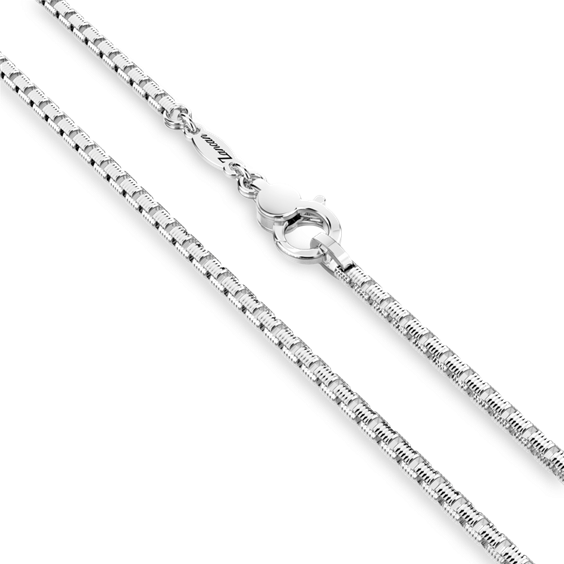 Le maglie di questa Collana sono caratterizzate da un pattern zigrinato. Uno stile minimal e contemporaneo adatto per qualsiasi occasione. Il gioiello misura cm.50.